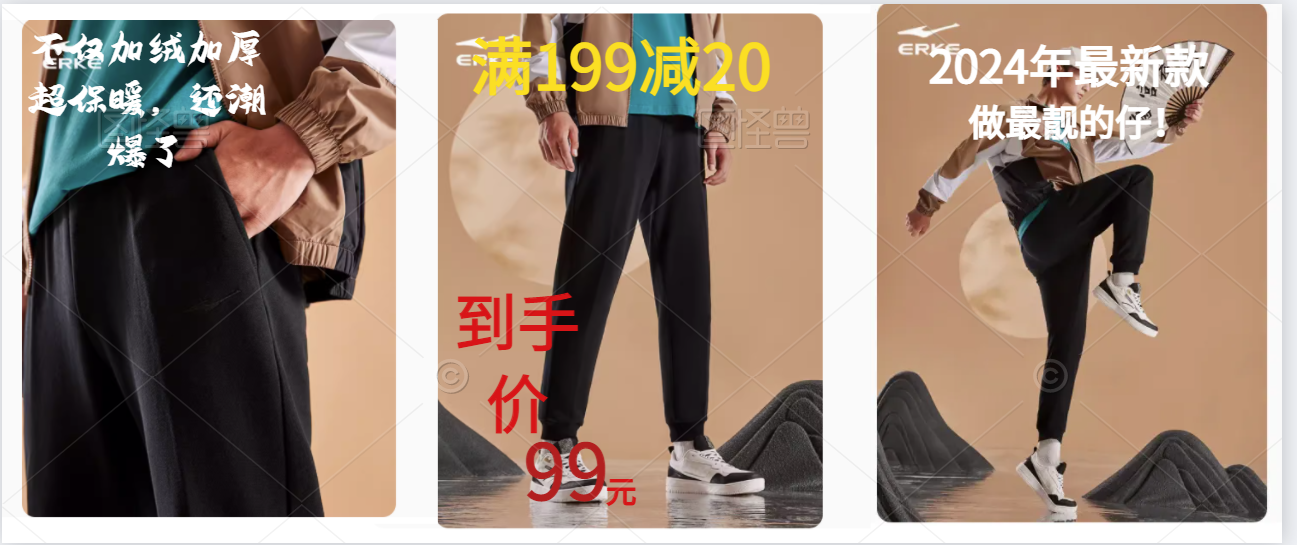 鸿星尔克运动裤男士2023秋季卫裤休闲直筒束脚运动长裤加绒针织裤 常规 黑 M