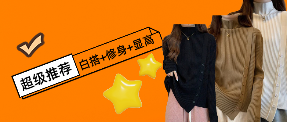 秋冬半高领显瘦显高纽扣长袖女士t恤 针织 杏色 M