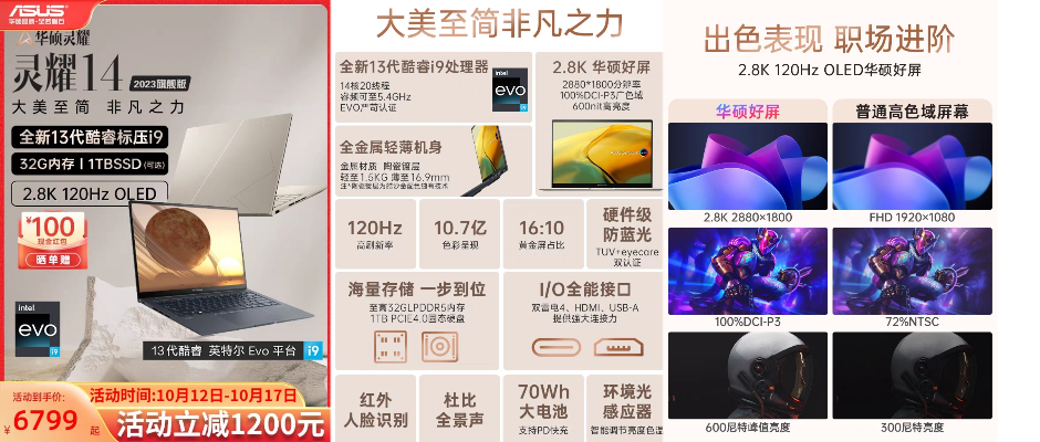 华硕灵耀14 2023旗舰版 14.5英寸13代英特尔Evo i9 2.8K 120Hz OLED
