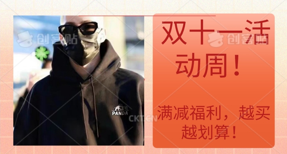 熊猫印花400G重磅cleanfit连帽卫衣男秋冬季美式高复古宽松银狐绒