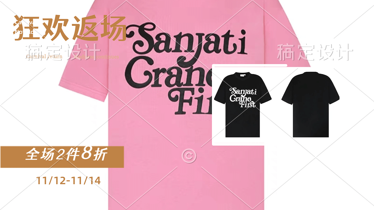 Sanjati crane基础logo多色美式宽松休闲短袖国潮男女情侣同款T恤