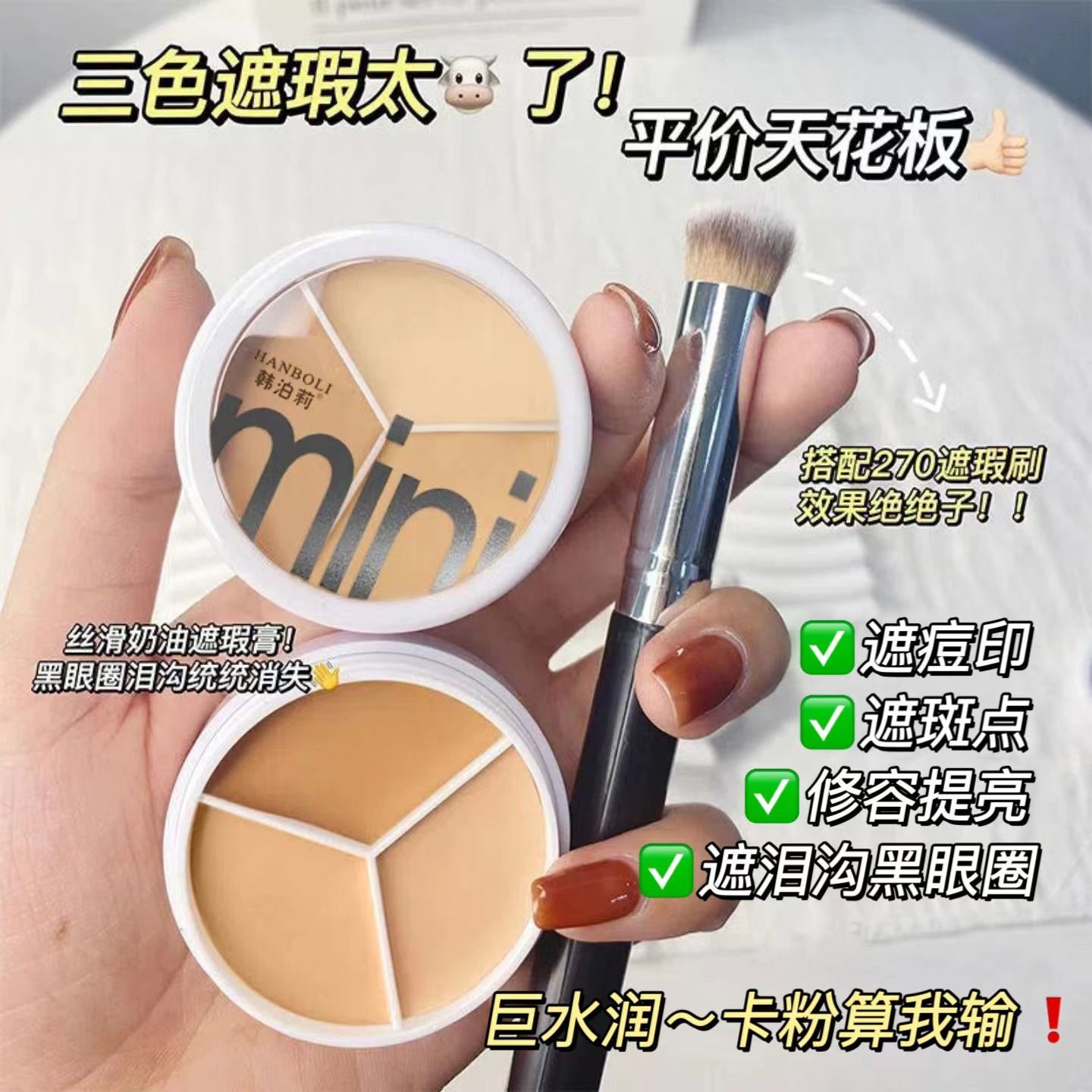 三色遮瑕膏持久遮斑遮痘黑眼圈不卡粉防水防汗