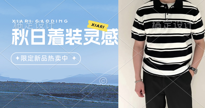 2023新款夏季男士polo衫设计款t恤短袖翻领半袖宽松黑白条纹体恤