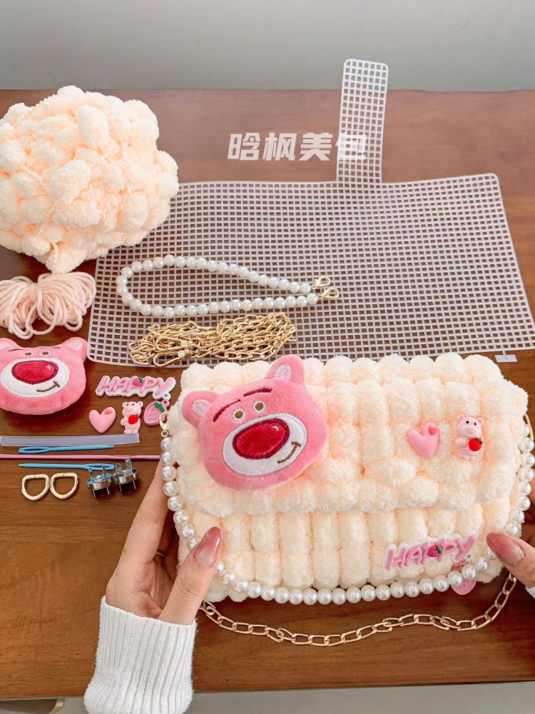 自制loopy小海狸手工编织包包diy材料包毛线可爱斜挎包成品送女友