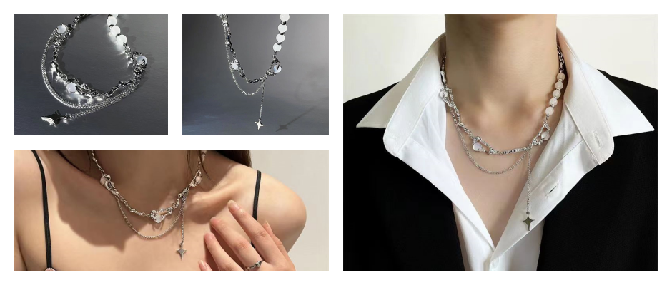 猫眼石芒星拼接项链女小众设计锁骨链曲别针气质轻奢个性时尚饰品人造石
