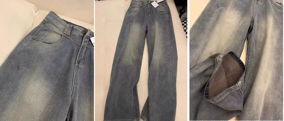 水洗做旧直筒牛仔裤女秋季新款大码小众设计感高腰显瘦阔腿裤子潮 麦穗蓝 m