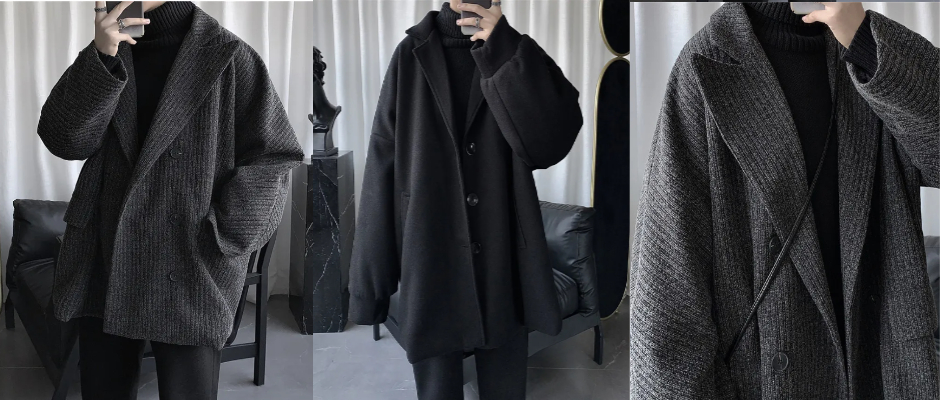 港风毛呢西装大衣潮流冬季韩版风衣 灰色 L