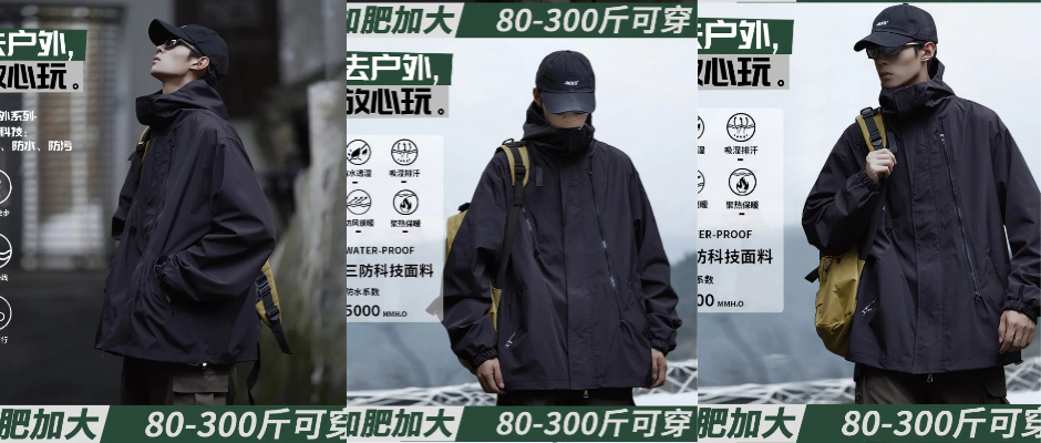 拉链冲锋衣男秋三合一外套美式工装夹克 黑色 L