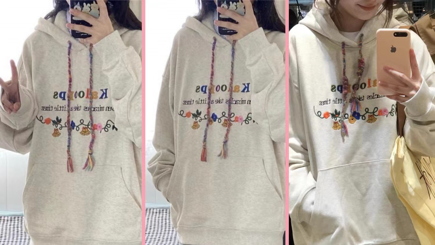 学院风凯蒂猫潮牌印花连帽卫衣男女加绒加厚纯棉宽松秋冬外套 白色