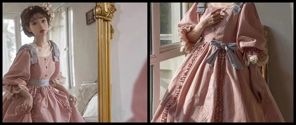 洛丽塔粉色新款在逃公主裙法式复古洋装Lolita重工连衣裙宫廷风粉色裙 s