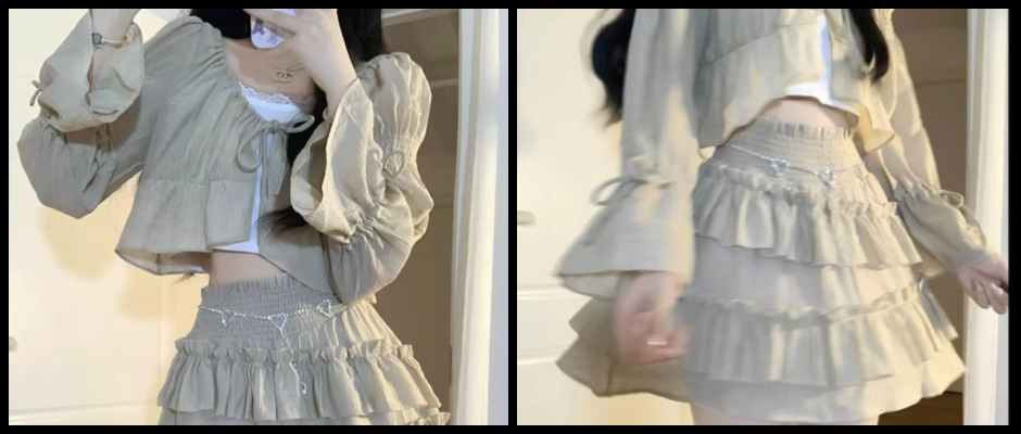 套装女2023秋季爆款纯欲气质花边吊带背心短款上衣蛋糕裙三件套潮 s