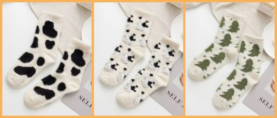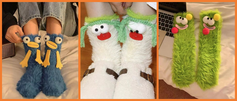 搞怪丑萌大眼仔毛绒袜子 绿色