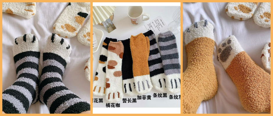 猫爪睡眠袜 条纹黑