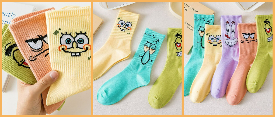 动漫卡通女中通秋冬季篮球袜 黄色海绵宝宝
