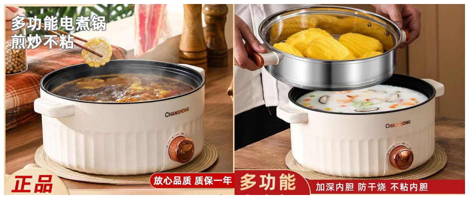 长虹电煮锅多功能家用煮面小电锅电炒锅蒸煮一体电热火锅 无蒸笼