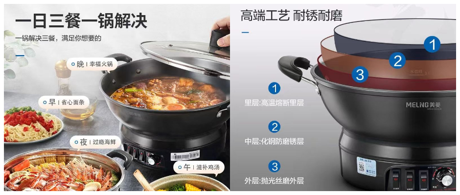 梅特德菲多功能电子微压锅麦饭石不粘锅料理锅电火锅电炒锅万能锅 6升