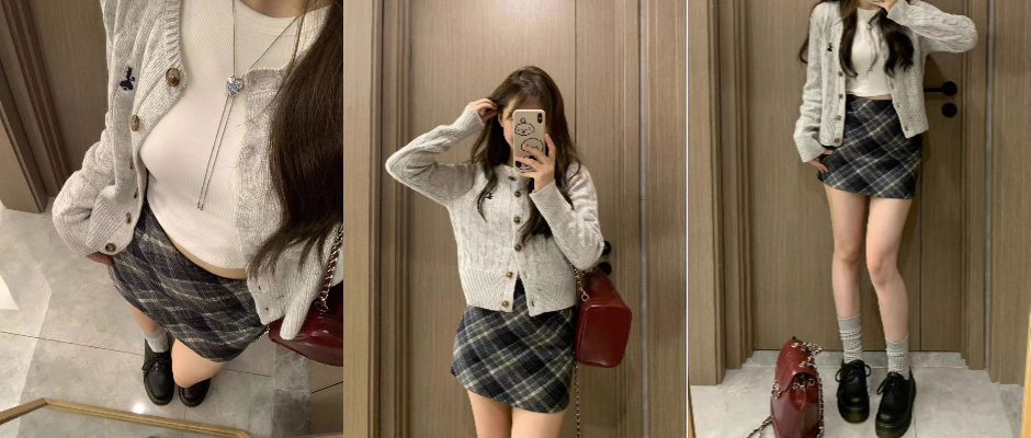 LANAO 灰色韩系粗麻花刺绣针织开衫女2023秋冬学院风短款外套上衣 灰色 S