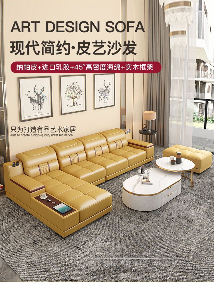 邻式木叶 新款真皮沙发头层牛皮简约现代大小户型组合储物沙发