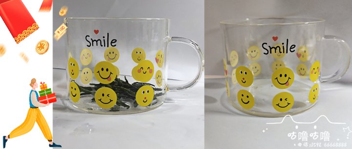 把手玻璃杯,搞怪笑脸