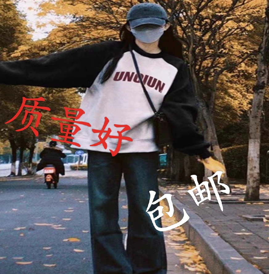 个性嘻哈重磅拼接长袖T恤女学生秋季宽松设计感高街风学生ins上衣
