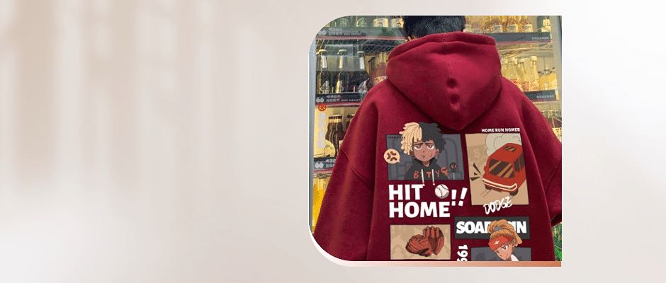 连帽酒红色卫衣男款