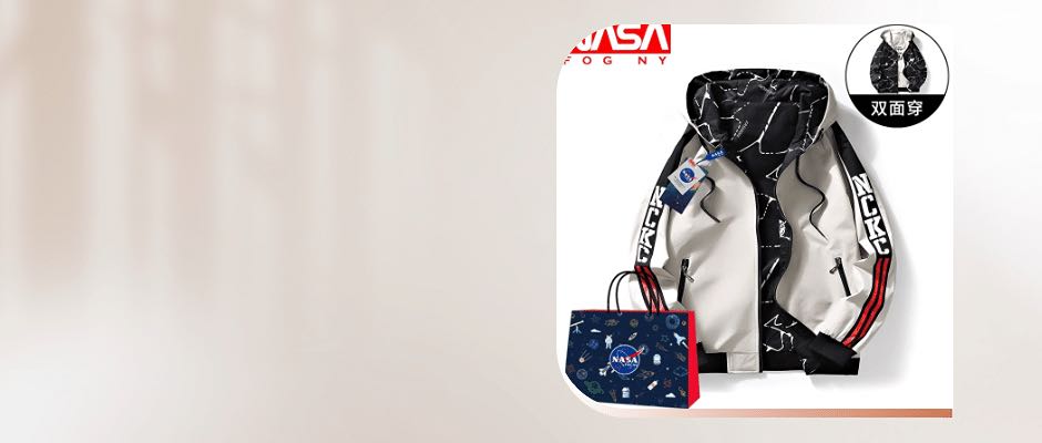 NASA FOGNY夹克男春秋双面穿连帽红色外套2023潮流青少年加厚衣服 白色 2x l