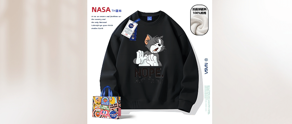 圆领卫衣男秋冬款加绒宽松印花套头上衣美式复古纯棉外套新款潮牌