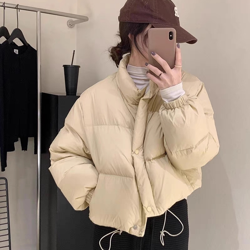 材质好,做工精细,面料柔软,尺码标准,百搭,时尚,很洋气黑色小个子肯豆风短款立领羽绒服棉服女款冬季加厚面包服外套上衣