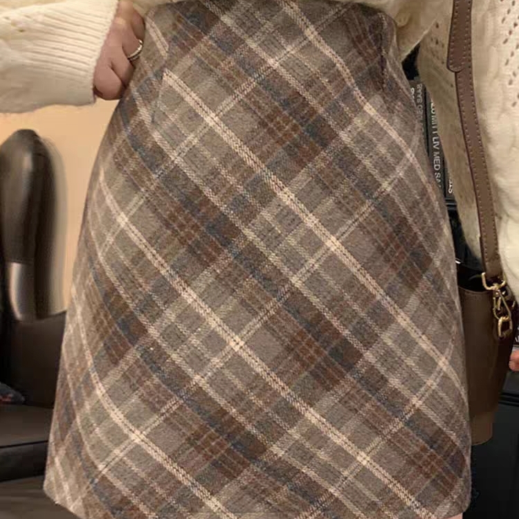 很上镜, 旅游必备,不透,面料舒服新款格子半身裙 长度合适 百搭红色格子毛呢半身裙女春秋冬季2023新款显瘦高腰包臀裙子a字短裙
