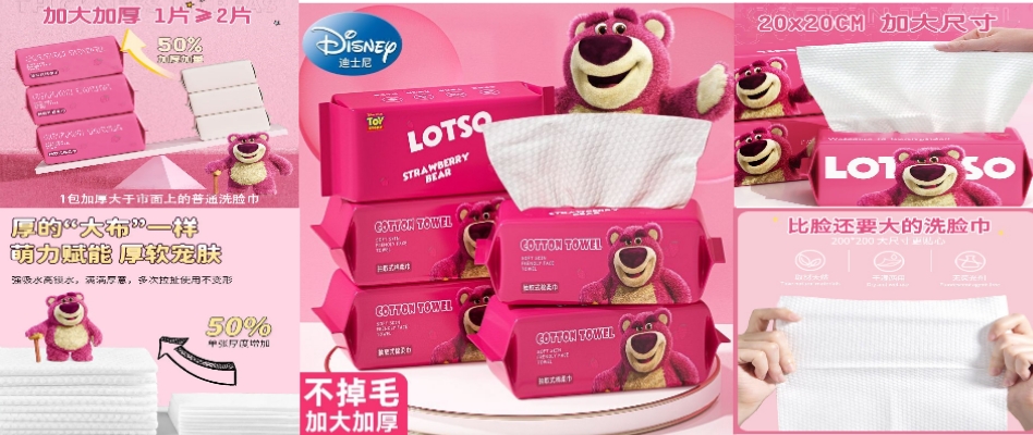 迪士尼洗脸巾一次性洗面巾纯棉超厚加大抽纸取式婴儿棉柔巾草莓熊