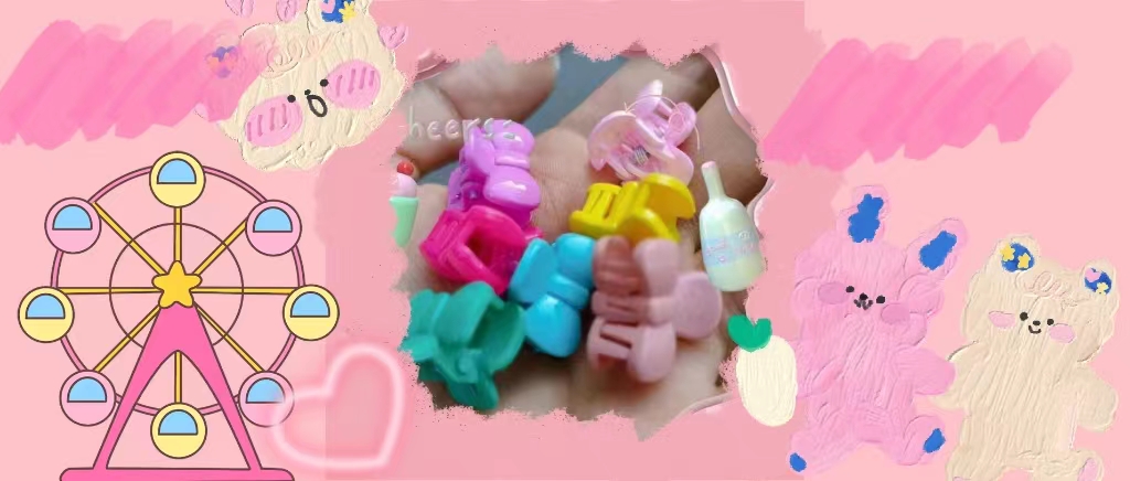 "新款卡通抓夹" - 这是一款极富创意的发饰,特别设计给可爱的小女孩,将她们的发型提升到一个新的水平。卡通抓夹不仅可以轻松固定后脑勺发饰,还以俏皮的卡通元素融入设计,营造童真无限的可爱感。