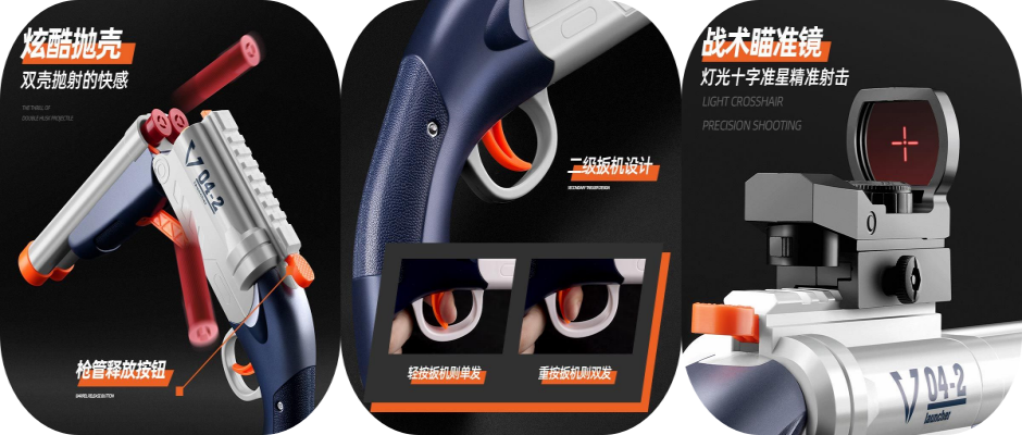 S686双管散弹枪仿真抛壳软弹枪玩具霰弹喷子发射器手小枪解压玩具网红玩具新奇潮玩不卡弹可过安检颜值高方便携带可激发水蛋可diy自行装配套装互搭把玩性到顶的玩具