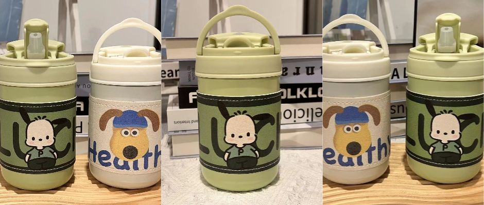 保温杯大容量可爱帕恰狗316不锈钢水杯女ins高颜值手提吸管杯家用 绿色超酷小帕保温杯 500ml