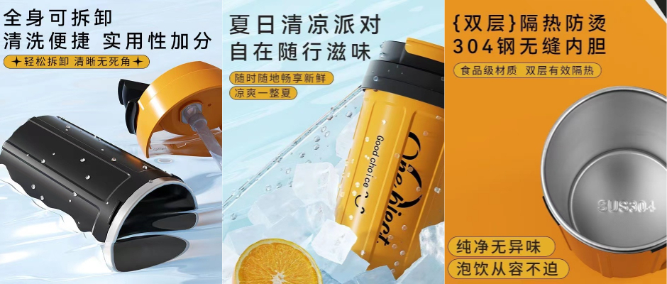 优美家304不锈钢双饮杯便携吸管杯高颜值咖啡杯学生大容量随手杯 304抗菌级-510ml 黑色