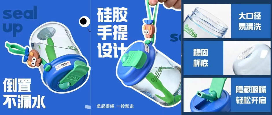 重庆专享——夏天吸管杯tritan材质水杯女生便携咖啡杯牛奶随行杯子塑料耐高温 糖果绿 500ml