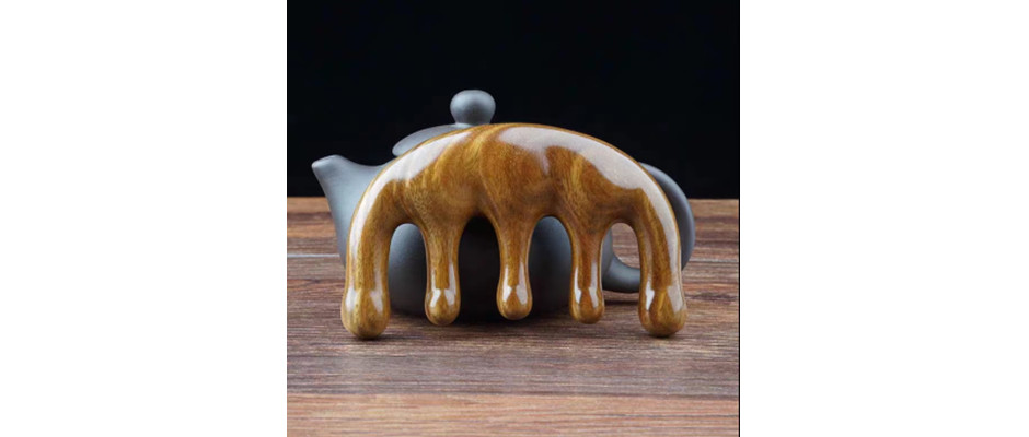 大号绿檀木指环梳按摩梳 荷花齿好入发弧面内凹插齿梳