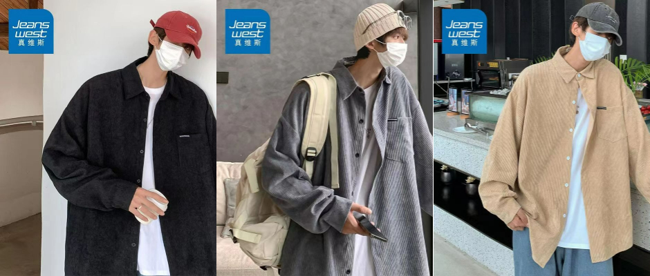 真维斯灯芯绒衬衫外套男秋新款韩版宽松日系复古港风长袖上衣百搭 黑色 XL