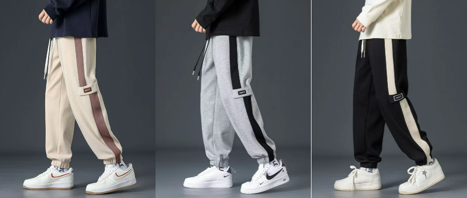 裤子男士春秋季休闲长裤男生潮流宽松运动秋冬款拼接撞色加绒卫裤 常规款 黑色 XL