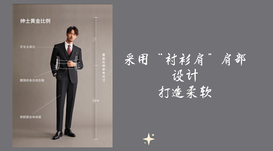 如量身定制般合体 结合亚洲人身材特点 进行反复修改调整 打磨出包容性大同时可以合身身形的西服版型