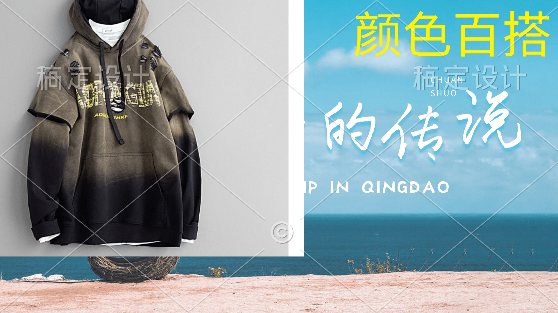 偏美式版型的一件帽衫 廓形裁剪更适合大多数 男生身材 杏色上身更有质感 印花和短裤的橙 色小细节做点缀