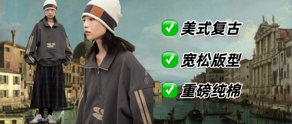三色撞色拼接,休闲运动秋衣风格,重磅加绒材质,复古宽松美式版型。