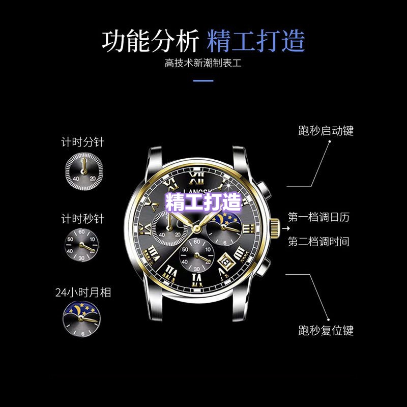 瑞士正品新款全自动手表男士十大国产品牌学生时尚石英表防水男表