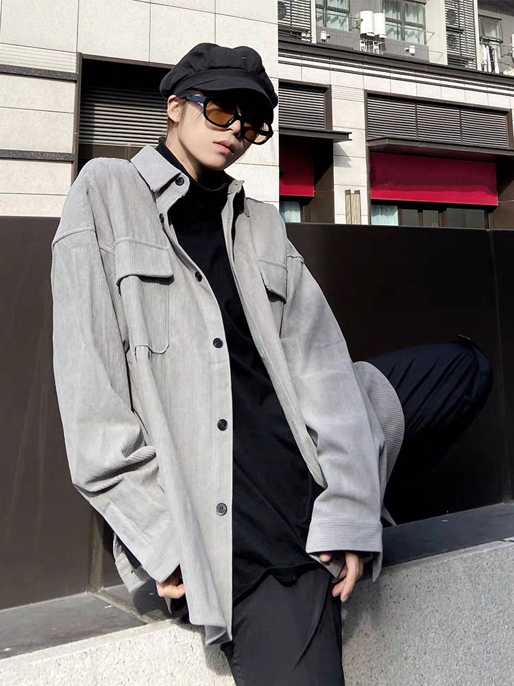 BTW秋季灯芯绒衬衫男美式复古潮牌宽松休闲百搭长袖衬衣翻领外套