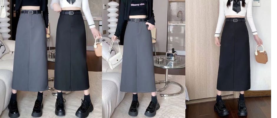 2023秋季高档西装半身裙垂坠感高腰显瘦遮胯百搭开叉包臀a字长裙 黑色 S