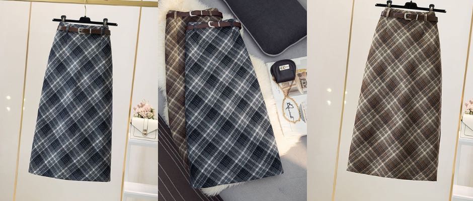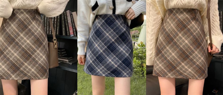 格子半身裙秋冬复古洋气气质百搭遮肉修身显瘦高腰毛呢短裙包臀裙 黑色 S