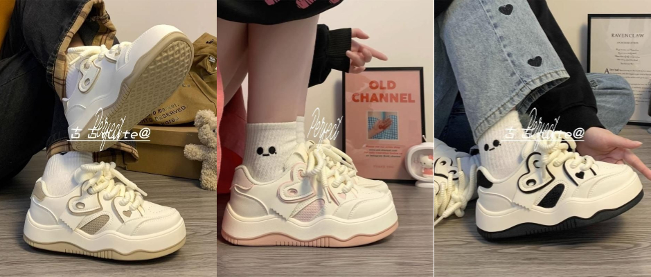 LKJD国潮小众爱心厚底滑板面包鞋女泫雅风百搭chic学生休闲运动鞋 黑色 36