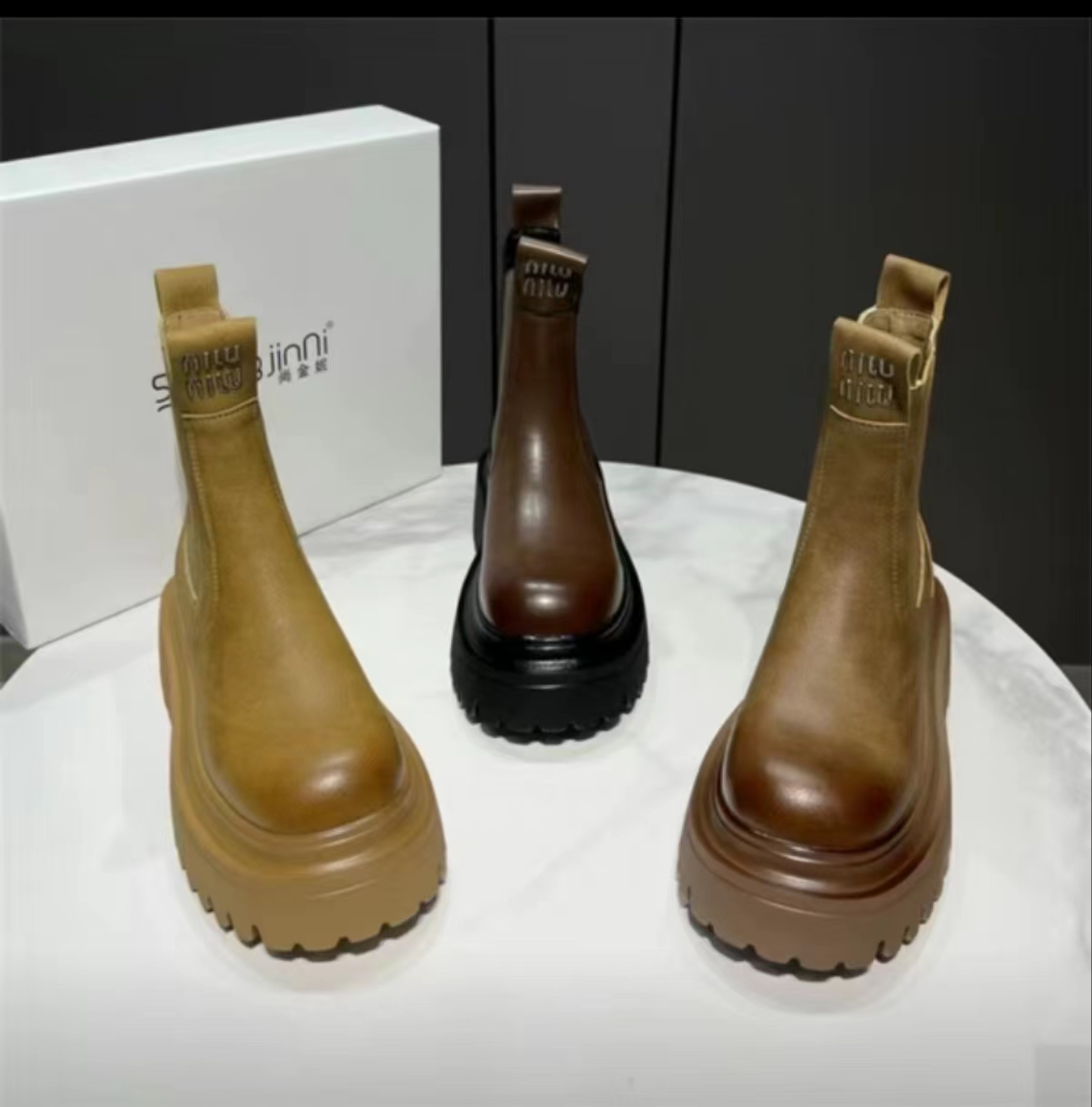 欧洲站厚底烟筒靴女2023秋冬新款英伦套筒短靴厚底擦色增高马丁靴