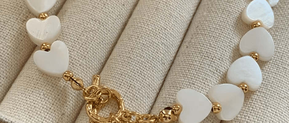 天然白贝母爱心项链女轻奢小众原创设计法式复古OT扣锁骨链毛衣链