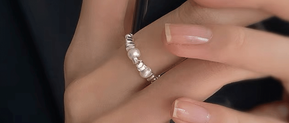 925纯银碎银子珍珠戒指女轻奢小众设计感指环食指高级感素圈戒子