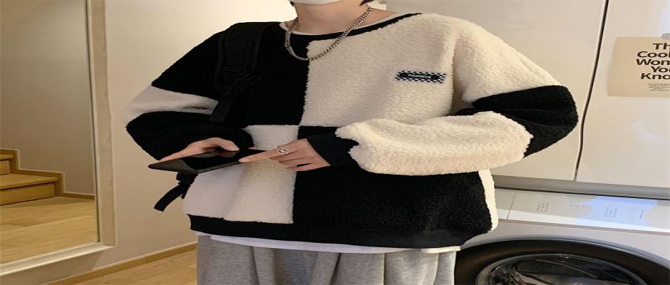 面料分类: 羊羔绒 图案: 格子 领型: 圆领 颜色: 黑色 绿色 袖型: 常规 细分风格: 潮 基础风格: 青春流行 适用季节: 秋季 适用场景: 休闲 版型: 宽松型 服装款式细节: 拼色服饰 工艺: 免烫处理 适用对象: 青少年款式: 套头